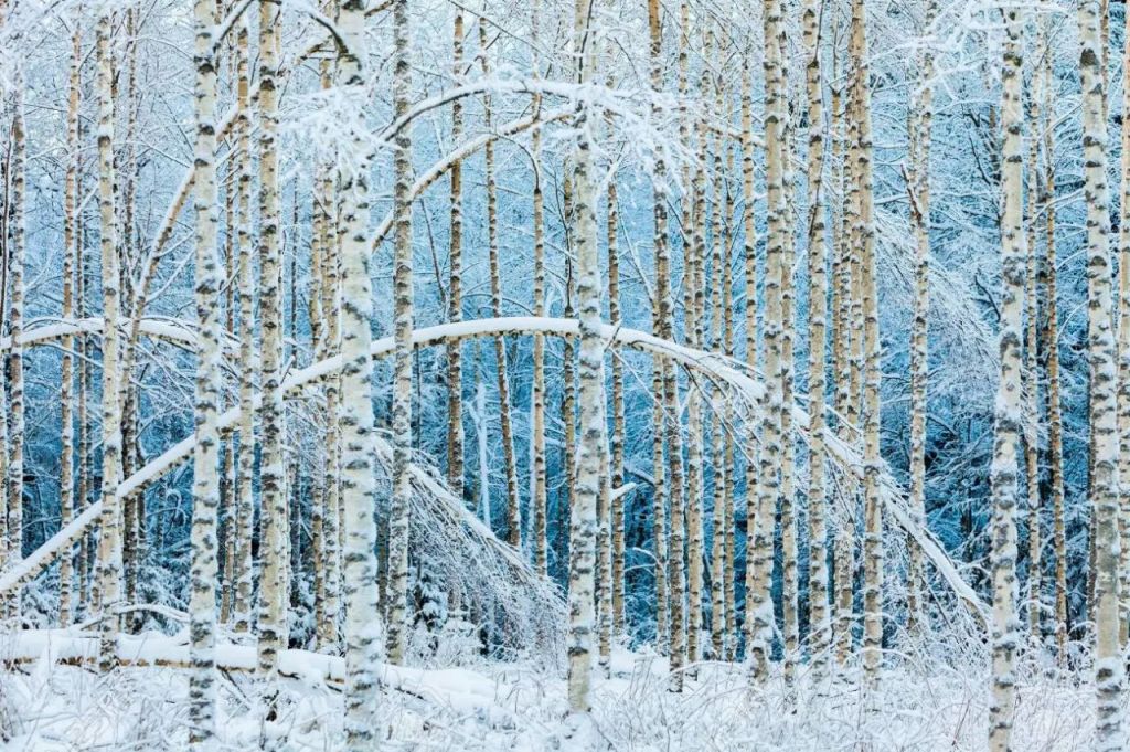 “When I see birches bend to left and right/ Across the lines of straighter darker trees,/ I like to think some boy’s been swinging them.”